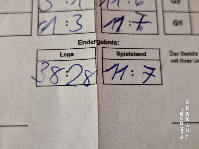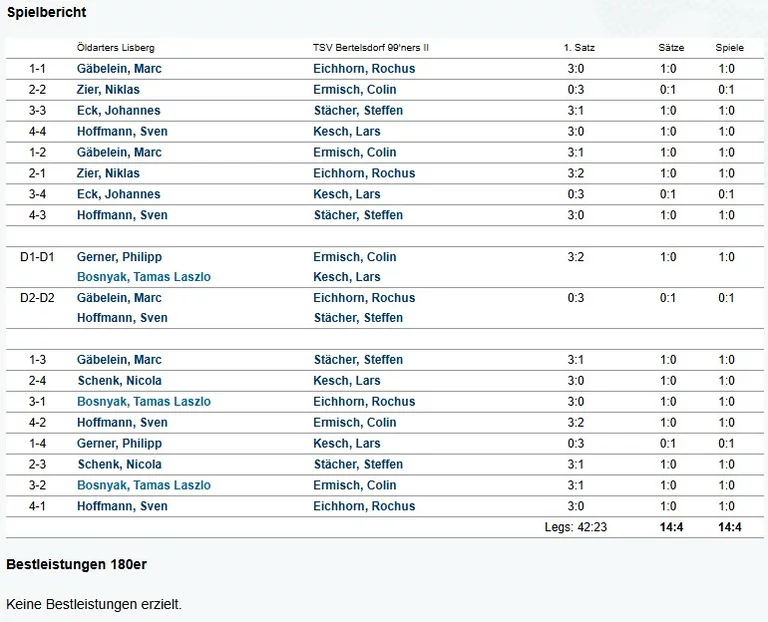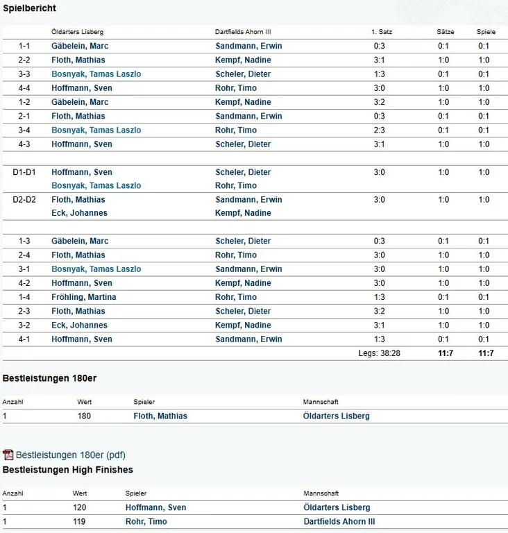 | 27.03.2026 - 20:00 | Freitag | Öldarters Lisberg | Dartfields Ahorn III | 11 : 7 |