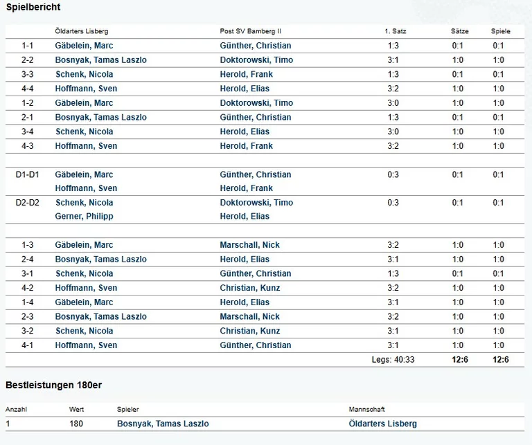 | 27.03.2026 - 20:00 | Freitag | Öldarters Lisberg | Dartfields Ahorn III | Lisberg |